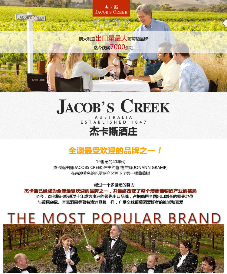 澳洲出口量最大的葡萄酒品牌 迄今獲獎7000余項 澳網公開賽贊助商