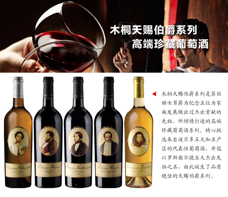 在菲利普羅斯柴爾德畢生的努力下,木桐堡在1973年被法國葡萄酒界評為一等莊園,其出產(chǎn)的葡萄酒具有奇異的酒香,醇厚酒體和飽滿酒色,是歷史上最奇異的波爾多紅酒。