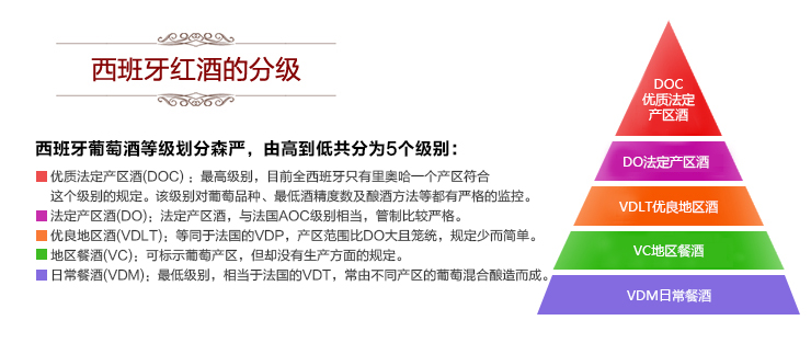在歐洲傳統葡萄酒產國中,西班牙是近10年來釀酒水準進步最快的國家。現在,西班牙變成了全歐洲最前衛的葡萄酒產國,其釀酒傳統在新的觀念以及新的釀酒技術的帶動下,不僅釀酒水準大幅提升,而且出現了許多新興的、具有濃厚地方特色的世界級新產區,也成立了非常多的新興酒莊,成為舊大陸里的新大陸。西班牙是全世界葡萄種植面積最大的國家,超過百萬公頃,但是因為嚴酷干燥的生長環境和比較粗放式的種植方式,葡萄園的平均產量非常低,每年約生產35億升葡萄酒,是全球第三大葡萄酒產國。