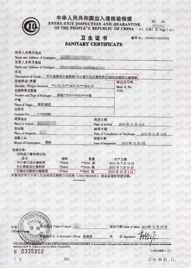 高質酒:由一般成熟度的葡萄、非常成熟的葡萄或者過于成熟的葡萄釀制而成。在德國由兩個級別的葡萄酒組成:高級葡萄酒QbA(Qualitatswein bestimmter Anbaugebiete)和優質高級葡萄酒QmP(Qualitatswein mit Pradikat)。這個類別的所有葡萄酒都要經過官方的質量檢驗,并獲得質量控制檢測號碼(A.P.Nr.)之后,方能銷售,該號碼必須在酒標上顯示。