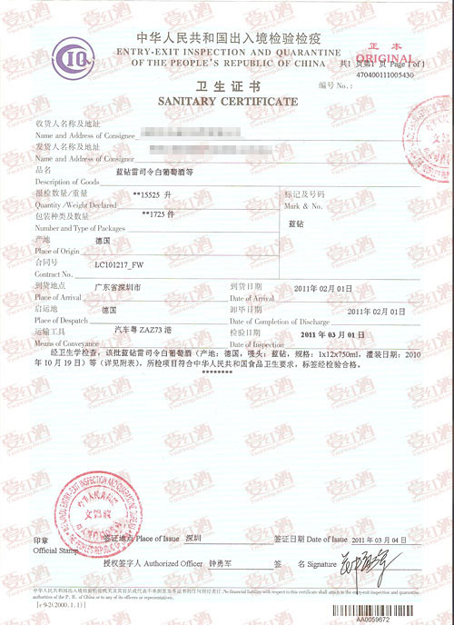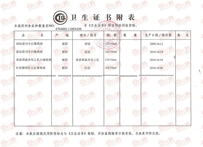要紅酒只出售原瓶純進口葡萄酒,下面出入境檢驗檢疫證書中可以看到此款佳釀。