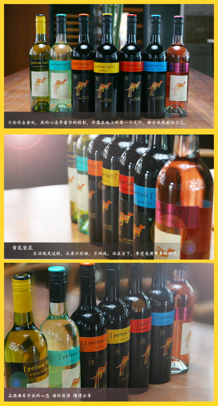 黃尾袋鼠是世界銷量第一的澳大利亞葡萄酒。干型,非常易飲。口感極佳。高品質(zhì)的葡萄配合熱帶水果香氣極具吸引力。美國(guó)市場(chǎng)