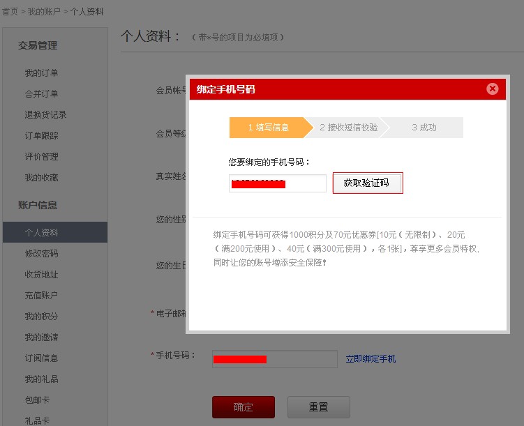 為什么要完成手機與郵箱驗證?1.確保您的帳戶安全;2.確保您能享受到更周到、更周全的服務,例:及時準確地接收到訂單處理通知郵件等~
